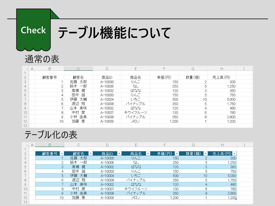 テーブル機能は、デザイン性・操作性の向上といったメリットがあり、非常に便利な機能です。